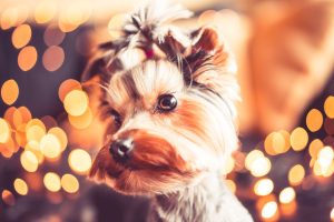 Wonderful Christmas Portrait of Cute Yorkshire Terrier