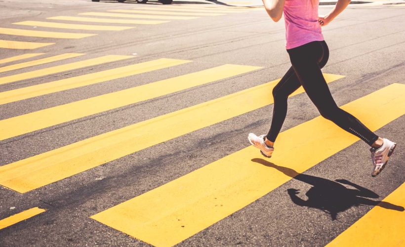Blonde Woman Running Over The Pedestrian Crossing